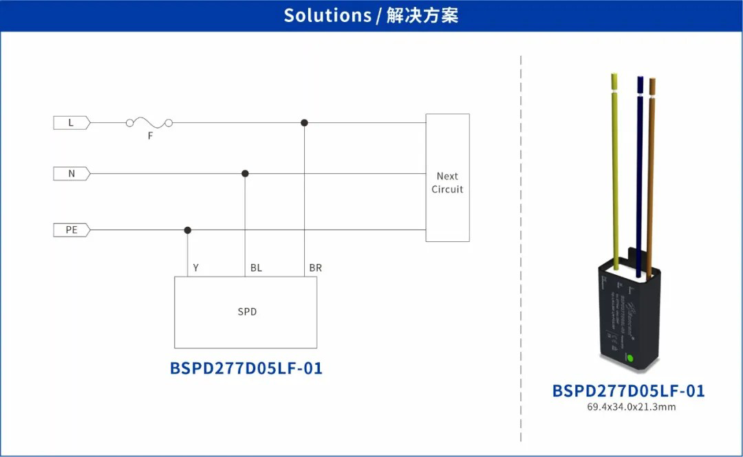 ▼路灯驱动电源AC90-264V 10kV防护方案